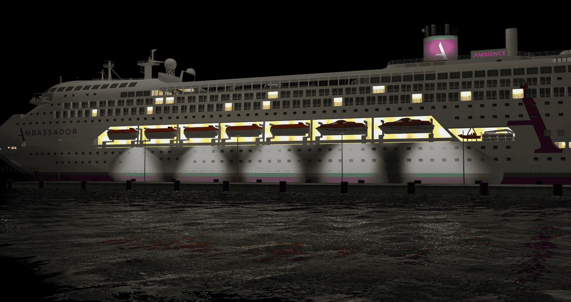 It pains me to write this since this would be a unique ship. But in my simulation the ship did not set in the water correctly and the lights were somehow tied to the sails position. Overall I am sad to say that I found freeware in higher quality. Not quite sure how this landed in the A group.