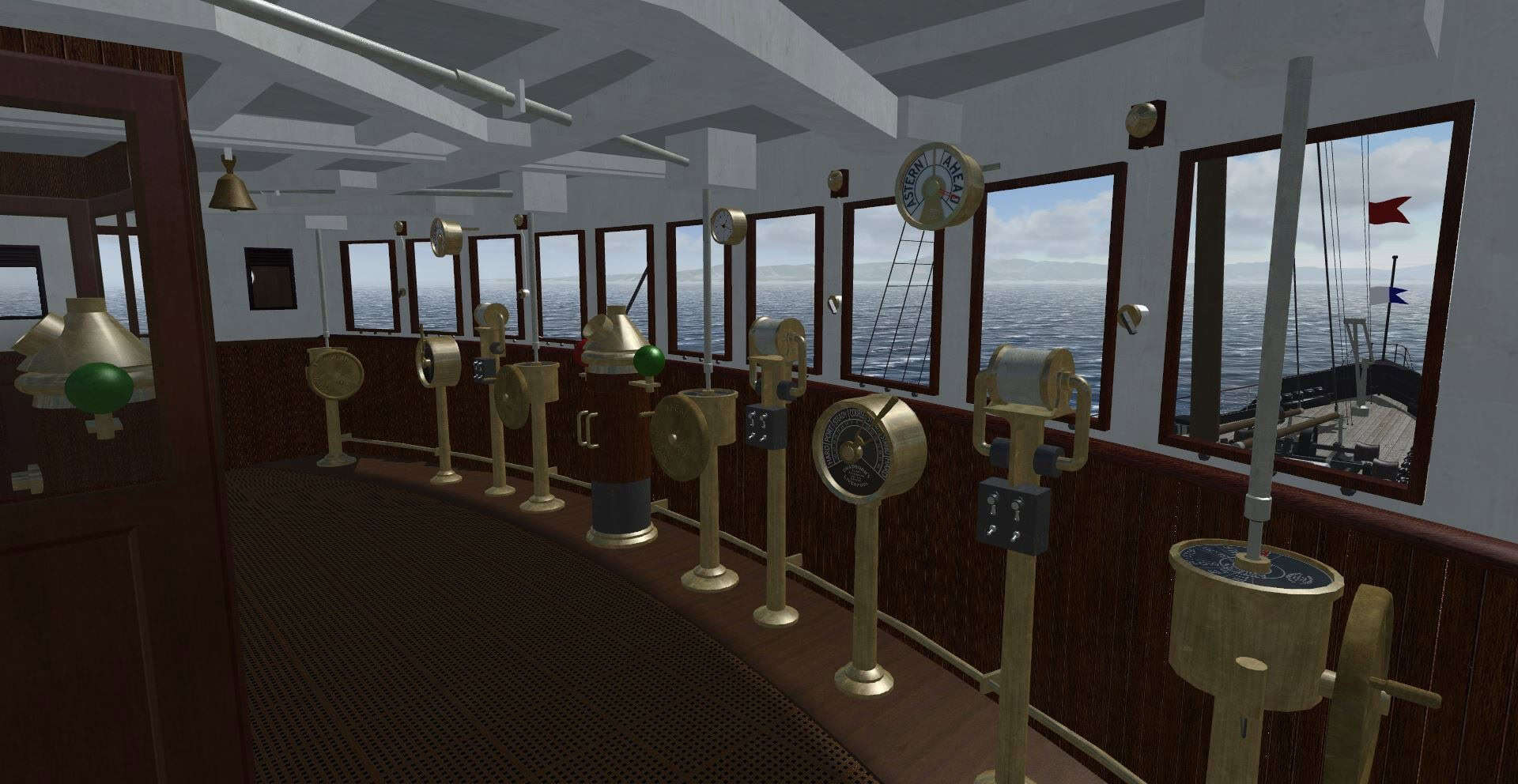 – Navigation bridge with fully functionning commands and instruments.