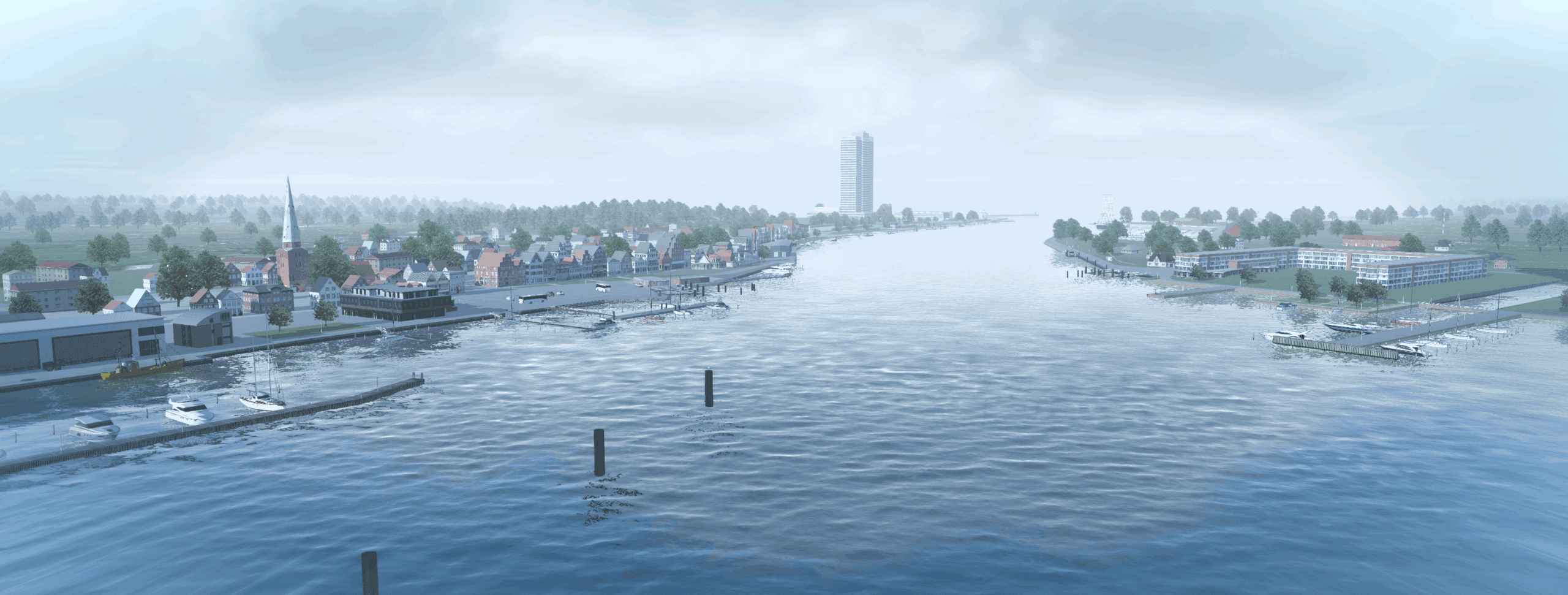 A milestone for inland scenery. Both excellently made ports are connected by a difficult, twisted route with many shallows. When models of barges and pushers appear, the fun on this add-on will be great. I recommend it!